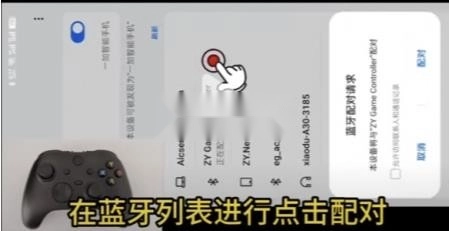 手柄震动后会进入快速闪烁状态,此时在蓝牙设备列表中找到“ZY Game Controller”并点击进行配对。
