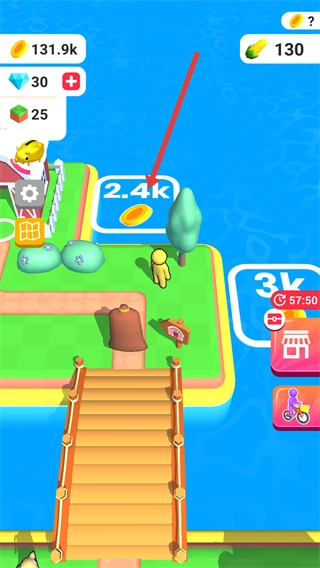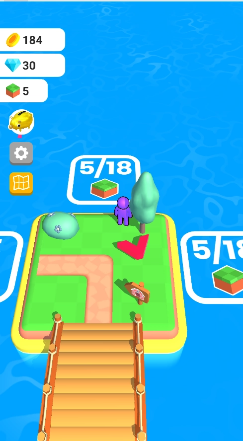 3、解锁新岛屿阶段,需积累足够的方块资源以满足解锁条件,随后通过搭建桥梁前往新岛屿进行拓展探索。