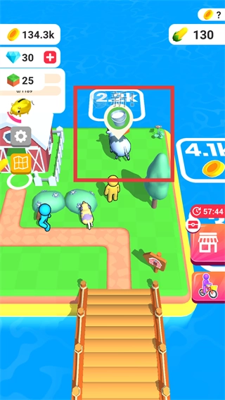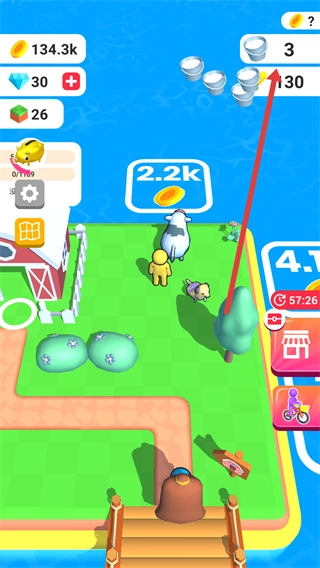1、操控角色移动,消耗金币解锁奶牛设施。