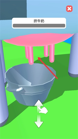 3、在挤牛奶界面按提示滑动操作,完成挤奶。