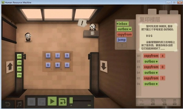 《人力资源机器》(英文名Human Resource Machine)是一款极具挑战性的编程解谜游戏。在游戏里,你将化身初入职场的程序员新人,通过拖拽移动、拾取、放置等指令模块来编写程序,还要依据任务要求,把拥有不同能力值的工作人员合理安排到各个岗位上,从而一步步晋升至公司高层。