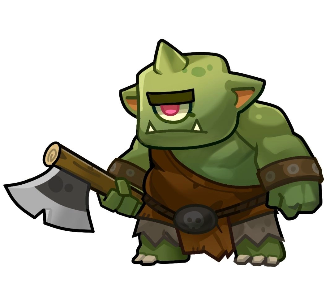 这种肉盾型怪物死亡后会分裂出两只绿皮小怪,它对射手类英雄的攻击有30%的伤害减免效果,常和强壮哥布林一同行动,为其他怪物的推进提供掩护。