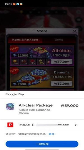 当弹出谷歌支付窗口时,点击一键购买以完成支付。