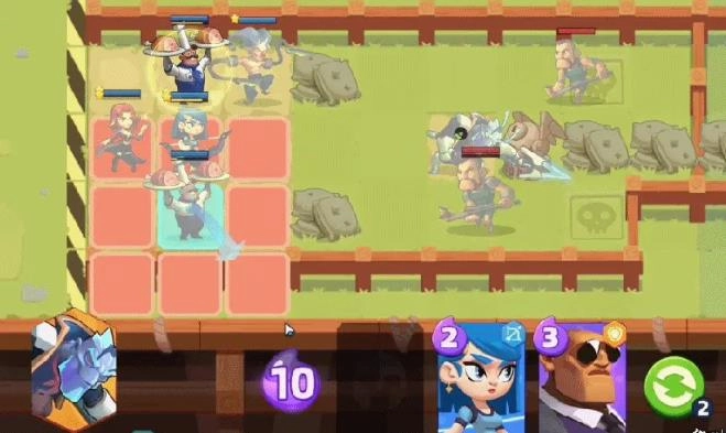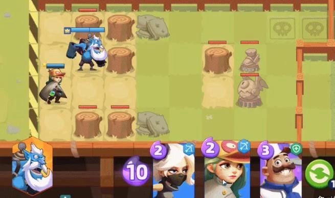 每次会随机生成三张英雄卡,要是你把这三张用完了,或者对当前出现的英雄卡牌不满意,都可以选择刷新卡牌。