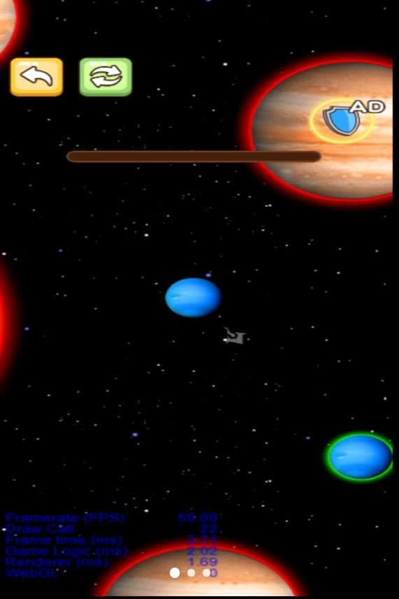 3、测试你的手速,通过快速移动,务必避免与大型星球发生碰撞。