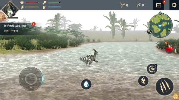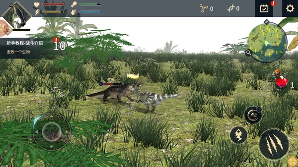 3、完成新手教程等任务,击败指定生物,获取资源、经验,解锁新玩法、恐龙种类。