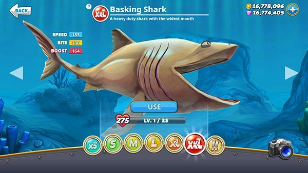 1. 您可以收集 20 种不同的鲨鱼,每种鲨鱼又有 8 种不同的体型。您可以扮演敏捷的锤头鲨,甚至可以扮演著名的大白鲨!