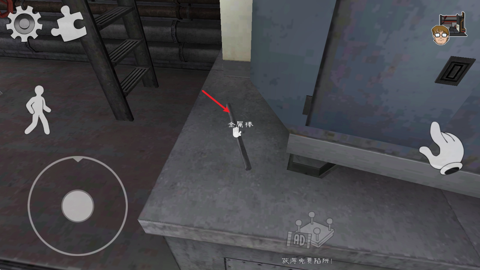 当你靠近物品时,右侧会弹出一个可交互的小手图标,点击该图标就能进行操作。