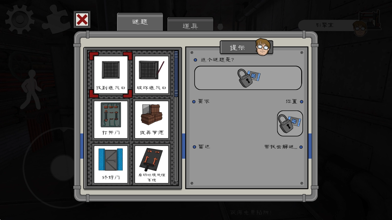 当你毫无头绪时,不妨点击左上角的拼图图标,这里会为你提供一些线索。