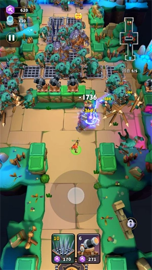 这是一款轻度塔防游戏,战斗机制融合了《兽人必须死》与《弓箭传说》的风格。玩家只需单指操控摇杆即可控制英雄移动,攻击则由系统自动完成,并且支持边移动边射击。游戏设有建筑值系统,玩家可消耗建筑值来布置炮塔、地刺等防御设施。采用俯视角设计,能让玩家对整个战场态势一目了然。随着防御设施数量的增加,玩家需要运用不同设施间的组合搭配策略来应对挑战。