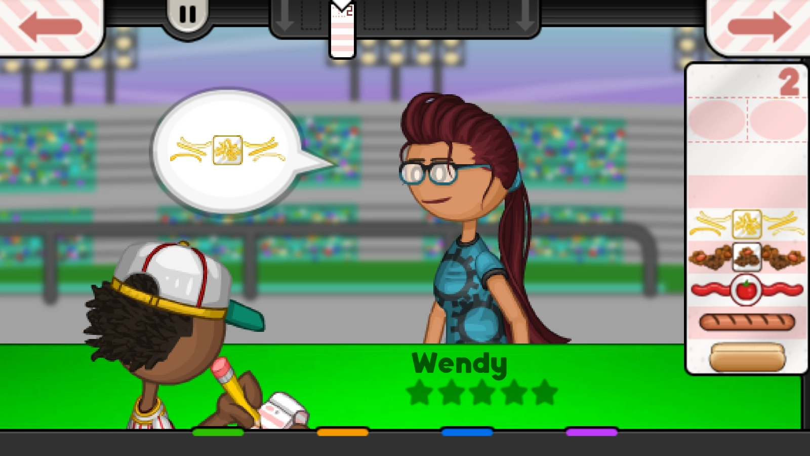 老爹热狗店是Flipline Studios旗下美食经营游戏系列中的一员,这款游戏以制作各式各样的美味热狗为核心玩法。在游戏里,玩家将在棒球场内经营一家热狗店,为源源不断的顾客提供可口的热狗,以此赚取更多小费。要想让热狗获得高评价、让顾客满意,就得认真完成每一步制作流程。而且随着等级的提高,还能解锁更多食材,遇到更多有着奇特需求的客人。