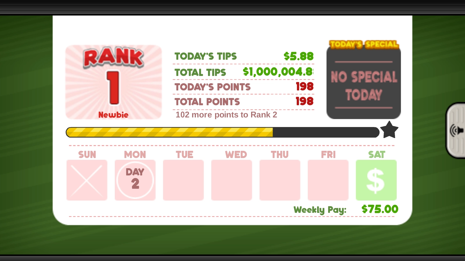 最后客人会依据你制作的水准进行评分,并给予相应的小费。