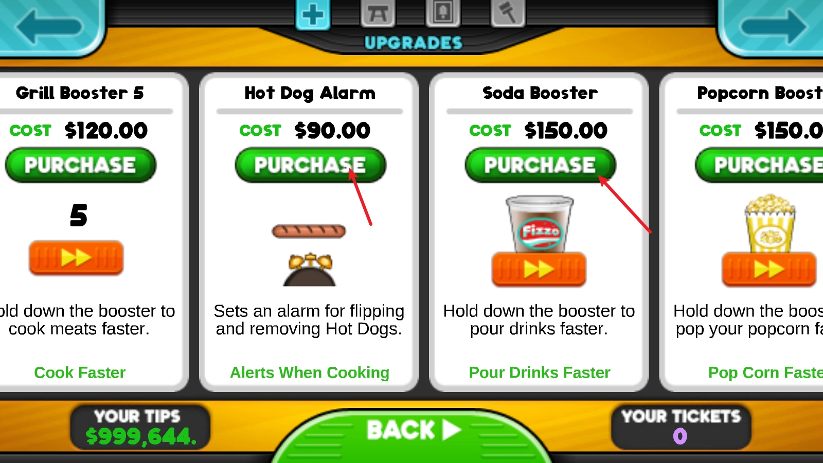 在这里就可以花钱升级设施,比如提现烤肠的闹钟之类的。