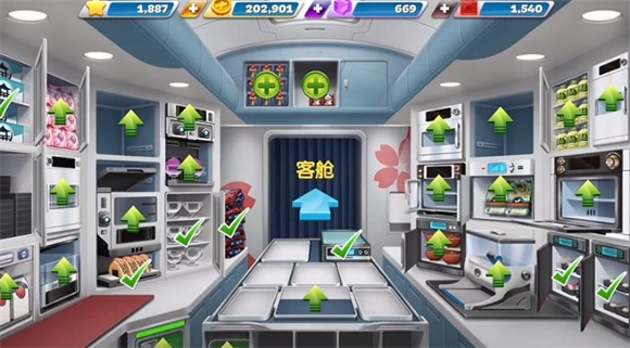 在闯关时,若想获取更多星级评价,关键在于积累更多收益;而要提升收益,就得对设备和食材进行升级——其中食物配料的升级优先级最高,其次是机器设备的升级,最后才是空币收入相关的升级。关卡的通关判定会依据航班落地时的最终收入来结算,由此可见,升级食物配料是提升收入最直接有效的途径。
