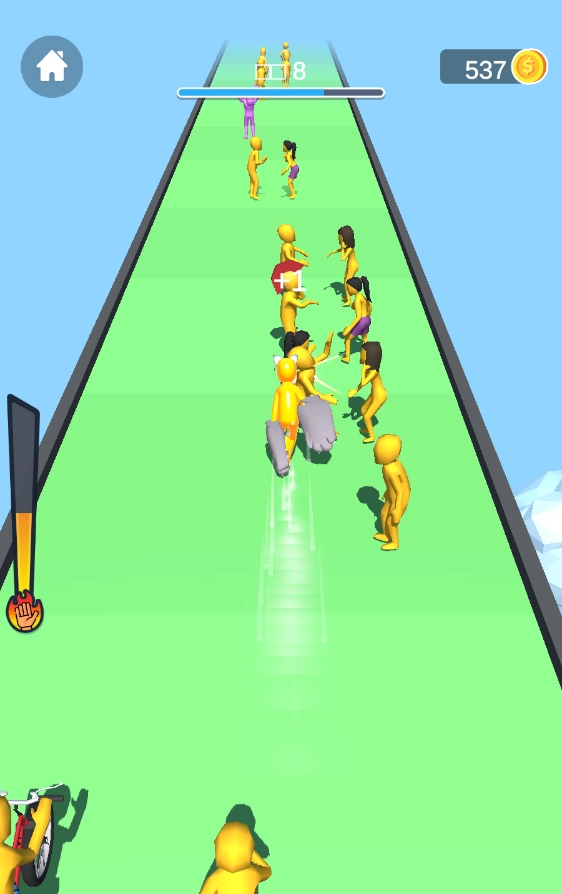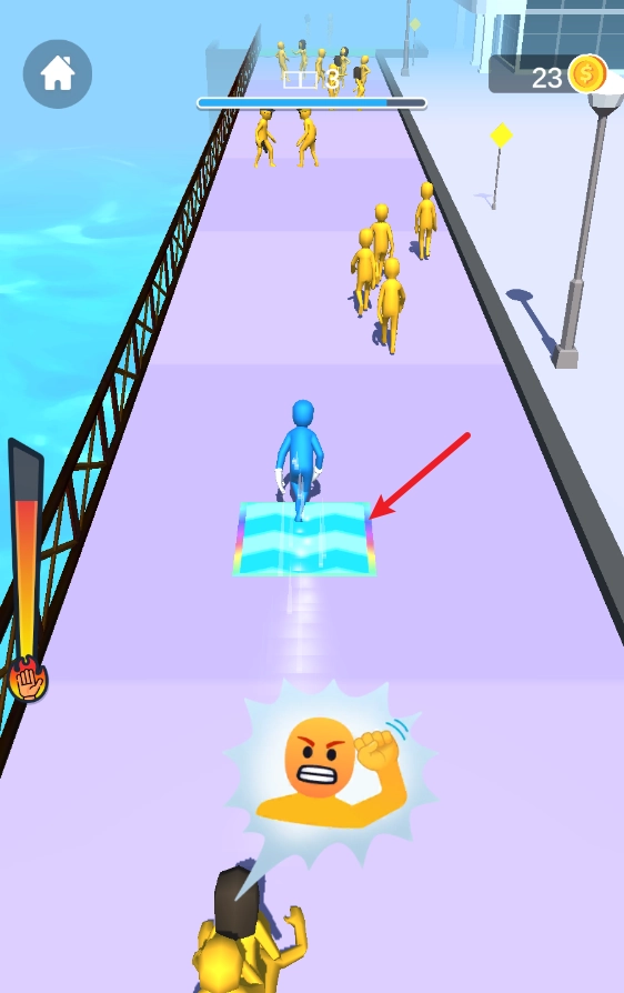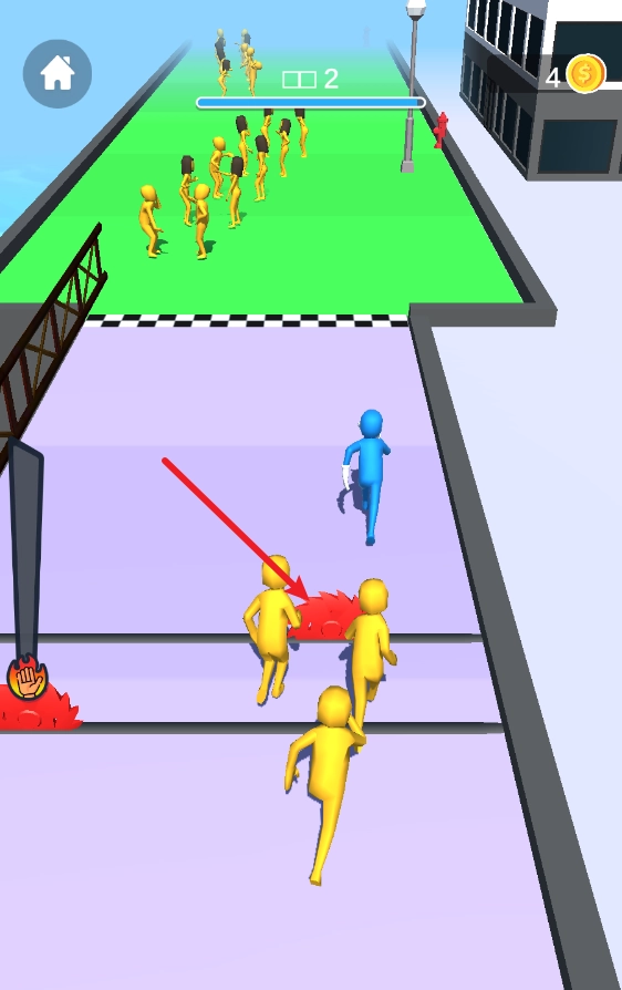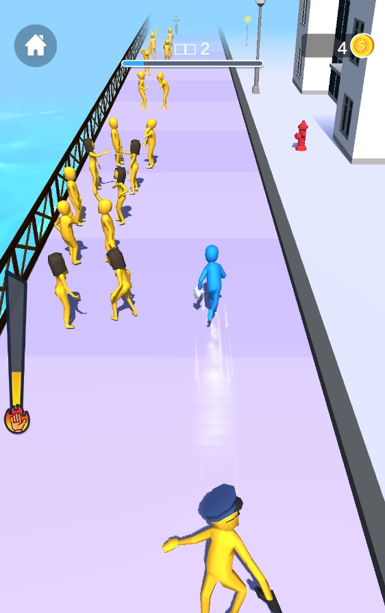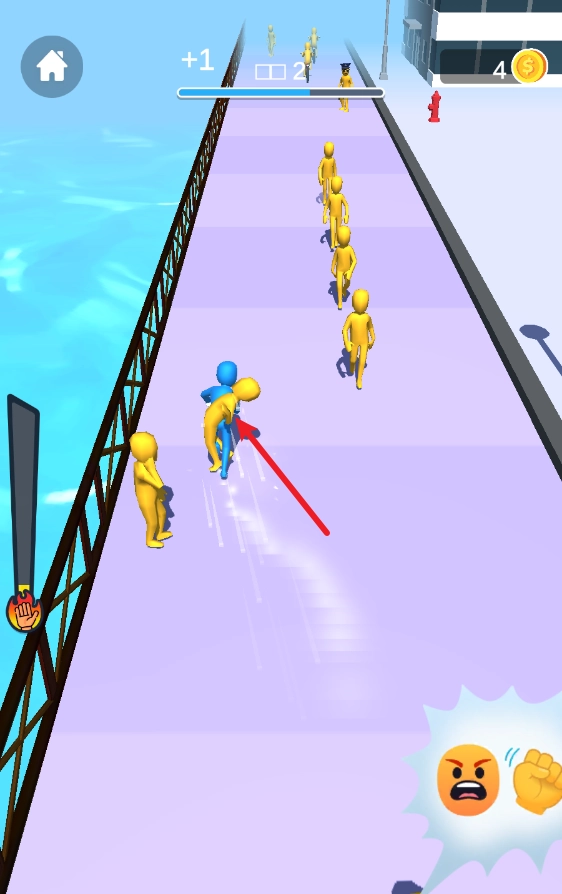 之后这些路人就会追赶你,你在躲避障碍物的同时还能顺手阻拦他们。