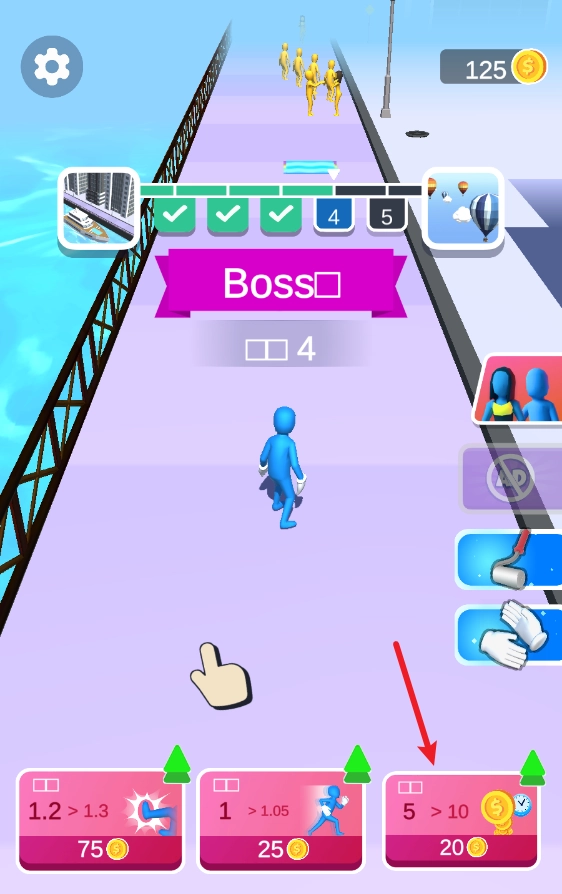 抵达终点后,根据最后被撞飞的位置给出奖励倍速。