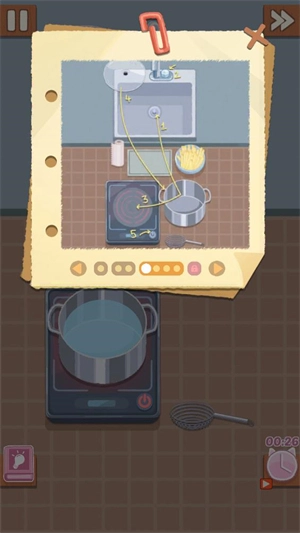 进入关卡后,你得依照指定步骤制作美食,点击场景里的物品和道具就能使用它们。