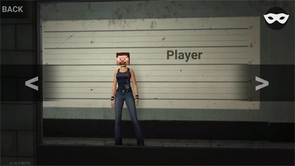 进入自由之城游戏后,点击左右两侧的箭头能够为人物更换服装,右上角的眼镜图标可以遮挡整个脸部。