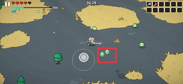 击败敌人后,它们会转化为绿色的能量体,玩家需要移动到能量体所在位置将其拾取。