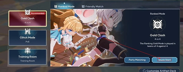玩家可选择“Gold Clash”进入4v4竞技模式,点击右下角的Quick Start就能开始游戏了。