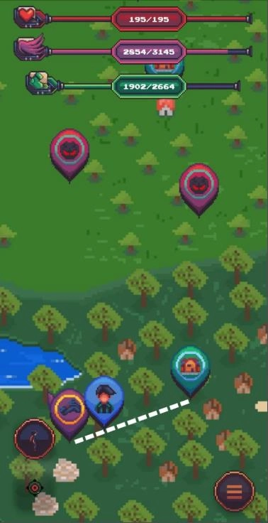 角色在地图上探索时,每日行走会自动累积步数。这些步数可用于战斗、采集资源、解锁新区域或完成支线任务。此外,通过解锁地牢、击败怪物和收集装备,还能不断强化英雄角色的能力。
