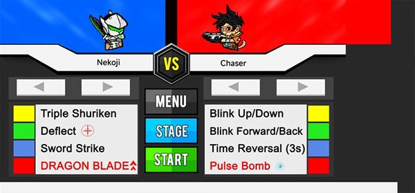 2、在单人游戏模式下,选定你的角色与对手,就能开启一场紧张刺激的对决。