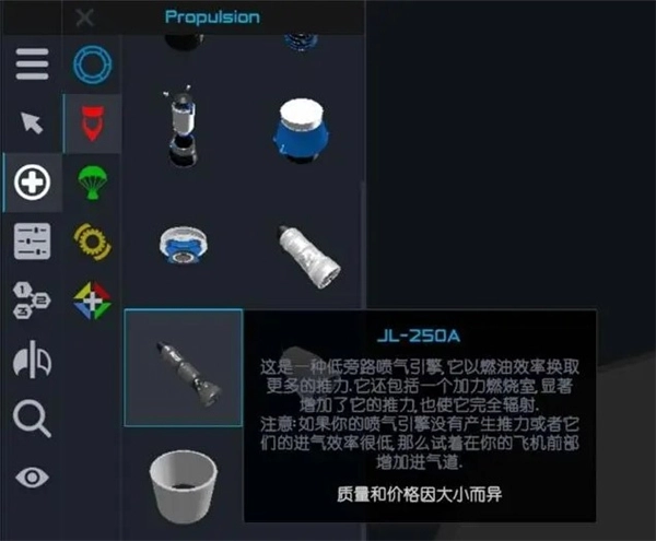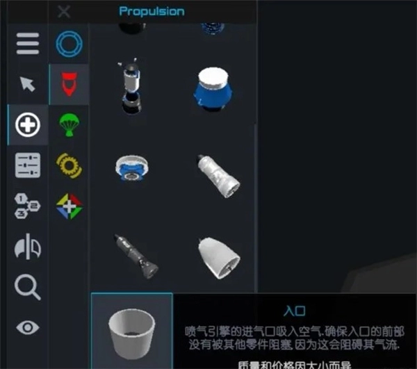 这个部件主要用于飞机的进气口,能提升飞机的飞行稳定性;同时它也可作为类似结构面板的组件——也就是火箭装饰。我一般会把它安装在火箭尾部,用来包裹体积较大的火箭发动机。此外,通过调整它的颜色或花纹,还能增强火箭的真实感与立体感。
