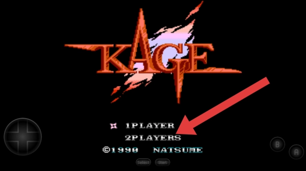 该实体名为“KAGE”,提供单人及双人两种模式选项,当前处于模式选择的初始界面。