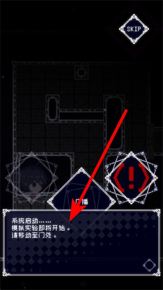 2、游戏过程中会出现剧情相关的文字提示,玩家要留意这些提示,以此了解实验背景以及后续的安排。之后,玩家能够移动到门口,确定下一个行动。