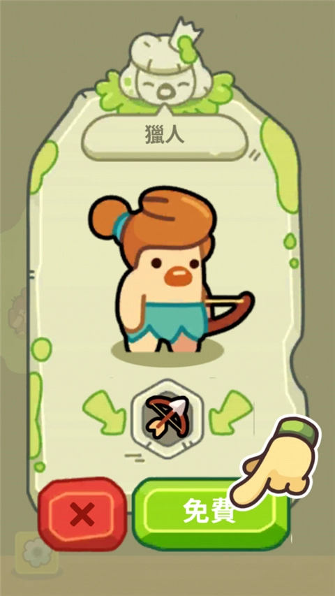 点击猎人头顶的弓箭,再点击“免费”选项,他就会协助玩家捕捉土鸡,这样玩家就能获得2份食物了。