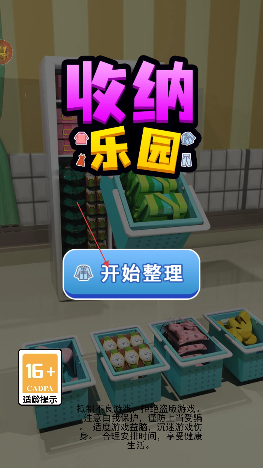 打开游戏收纳乐园,点击【开始整理】。