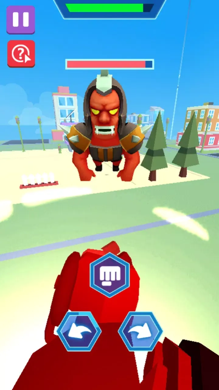 这是一款紧张刺激的休闲对战游戏。进入游戏后,玩家只需滑动屏幕,就能让自己的角色变身成酷炫的机器人,踏入危机四伏的战斗场景。战斗过程中,玩家需要眼疾手快地点击左右按钮,灵活闪避怪物的猛烈进攻,同时抓住时机按下攻击按钮,对怪物展开反击。不同的怪物有着各异的攻击手段,有的会喷射毒液,有的会发动猛冲,十分考验玩家的反应能力。玩家需要击败一波又一波的怪物首领,从而赢得游戏胜利,解锁更强大的机甲和全新关卡。快来挑战自我吧!