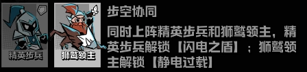 当精锐步卒与狮鹫统领协同作战时,前者将获得【闪电护盾】的特殊能力,后者则能解锁【静电超载】的强大技能。