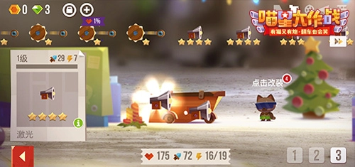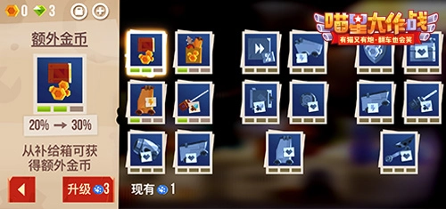 在游戏里,喵友们能在升级的过程中获取喵星点,利用这些点数就能解锁并升级各种各样的特殊技能,以此来强化你的战车或者提高战斗所带来的收益。