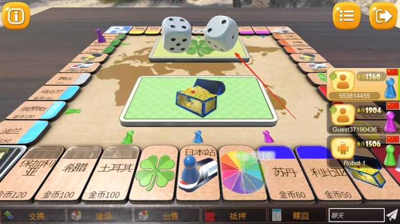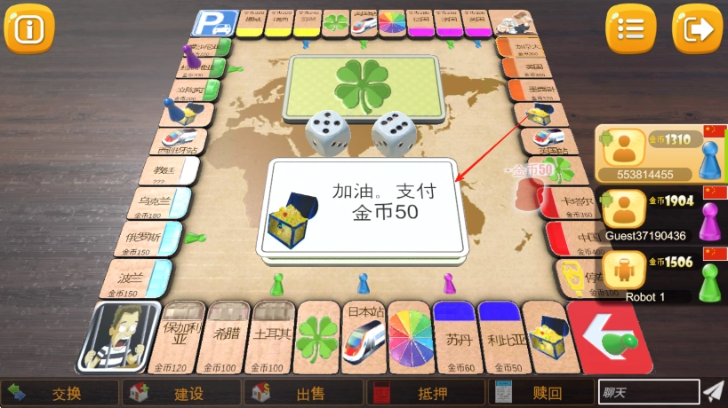 灵活交易机制:玩家能够主动向对手提出土地买卖、交换的提议,还可以通过协商来调整租金数额。这种灵活的交易系统不仅让对局策略更加丰富多样,也能促进玩家之间的互动与博弈。