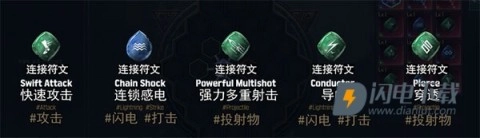 技能符文包含主技能,如闪电、投射物及弓箭等。