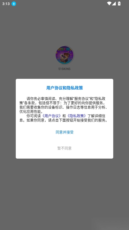 打开软件后,仔细阅读“用户协议和隐私政策”,确认无误后点击“同意并接受”按钮,即可进入软件。