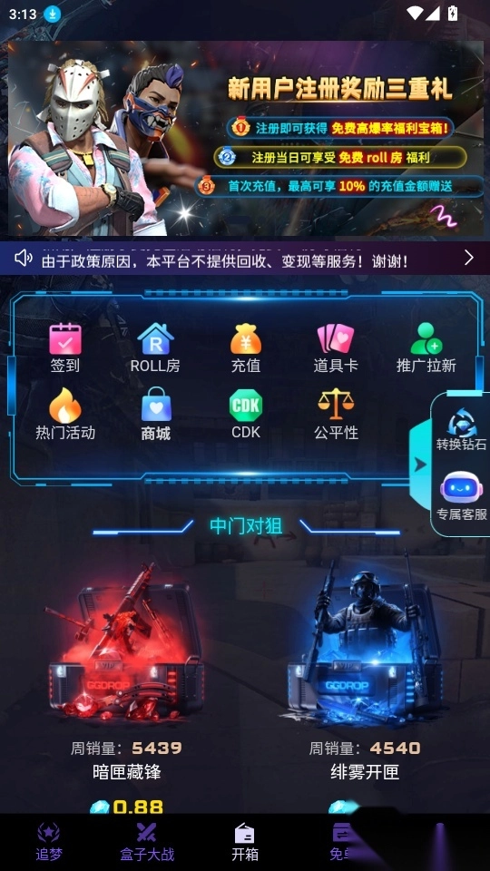 可以随时进入盒子大战功能参与各类盒子对战,借助游戏对战模式获取奖励。