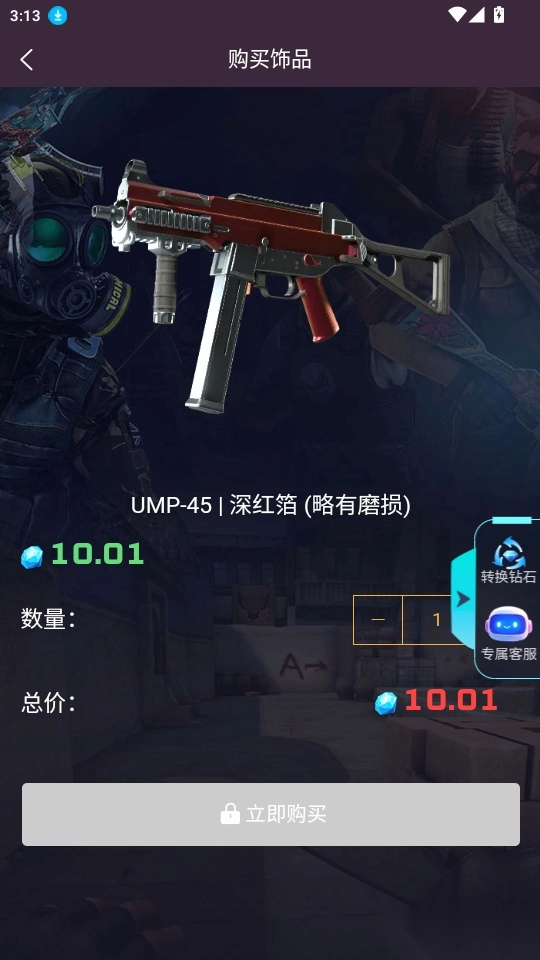 进入游戏饰品的详情页面后,点击“立即购买”即可直接下单购买该饰品。