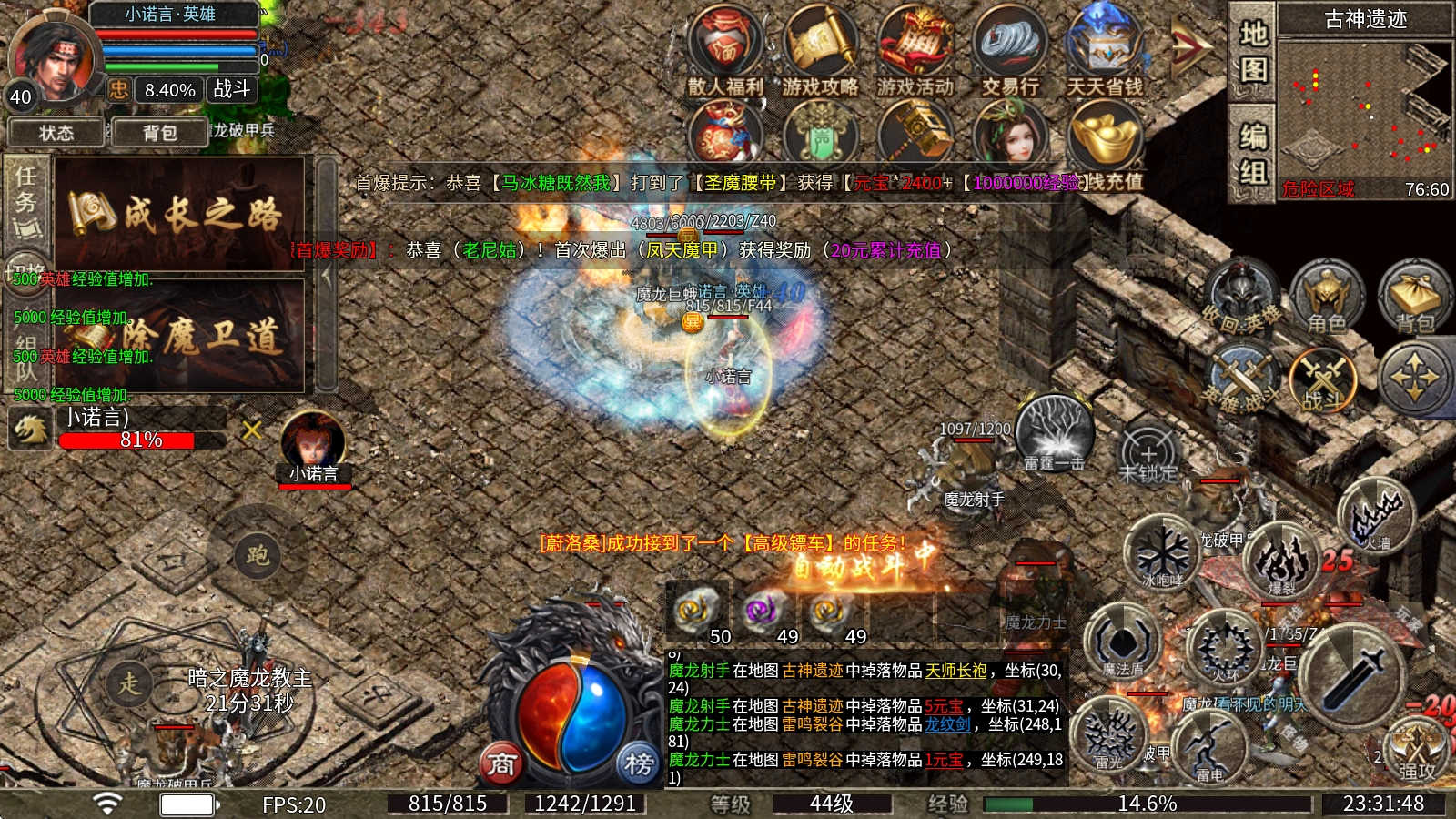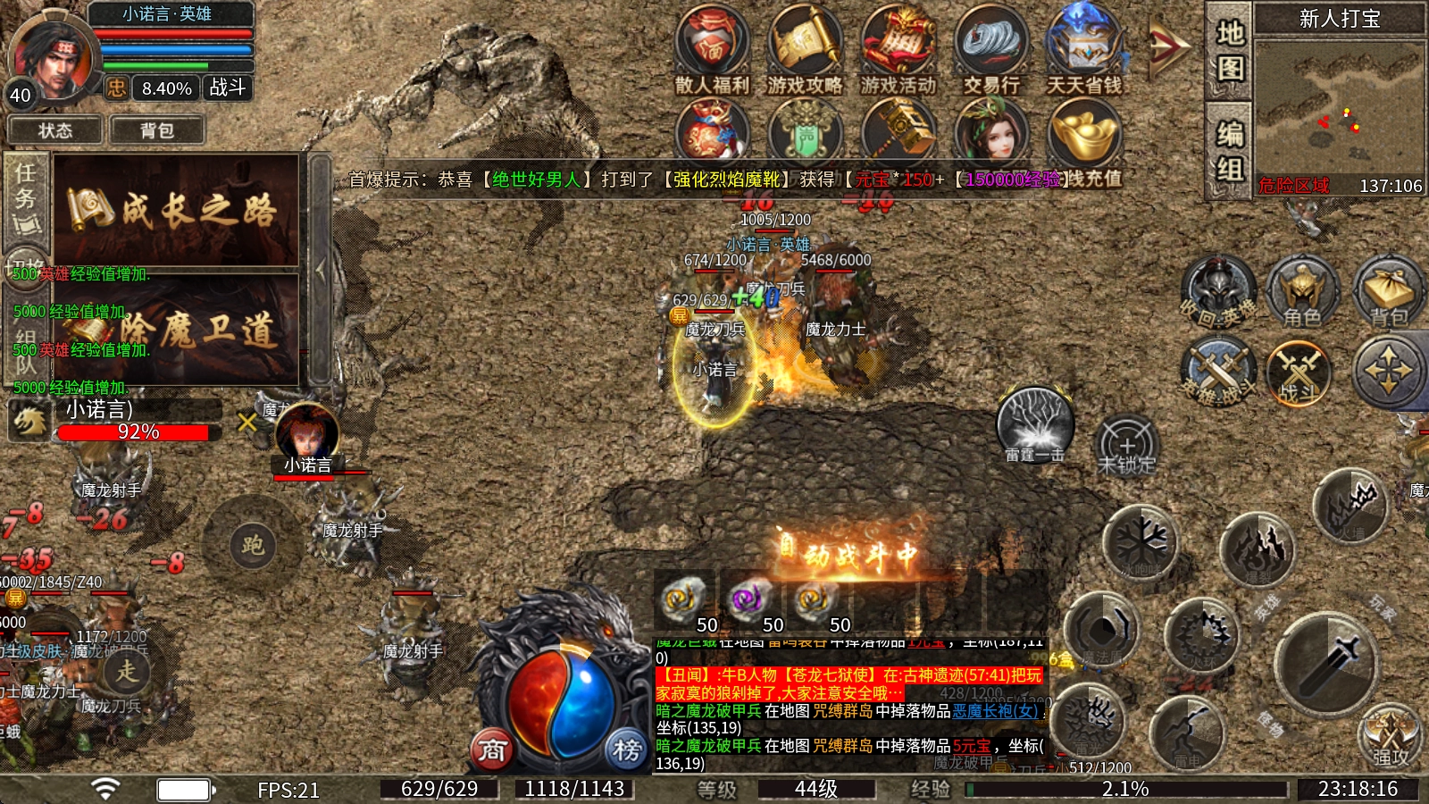 魔龙教主掉落所有物品的经典玩法,熟悉的地图、熟悉的怪物、熟悉的装备都能唤起你往昔的热血记忆,让你尽享最刺激有趣的传奇乐趣!