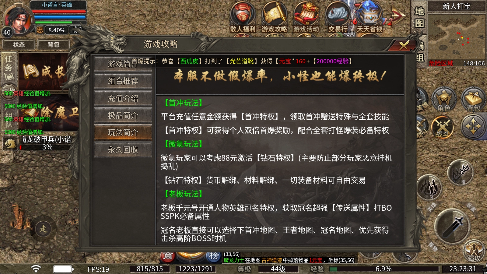 本服魔龙教主及以上BOSS可爆一切,BOSS血量越高爆率越高,众多BOSS等你来打,抢到就是赚到。