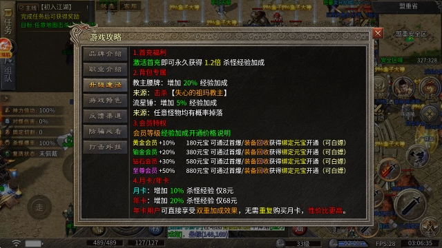 首充福利:完成首次充值,就能永久享有1.2倍的杀怪经验加成。