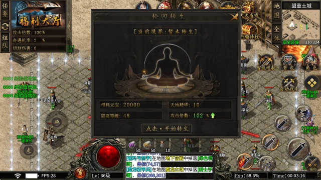 轮回转生:当等级达到48级后,可消耗元宝与天地精华来提升等级,每提升一级都能增加攻击倍数。