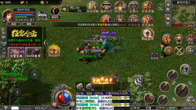 本服各大地图均有橙怪可供挑战,其爆率相当高,并且会随着开服时长的增加而提升,有机会掉落高级装备,还能直接回收狂雷币。