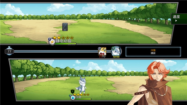 继续按照主线推进,抵达森林区域。若遇到静电幼猫,点击“捕获”按钮即可启动捕获流程;要是玩家不清楚自己搭档怪兽的技能,可点击右下角的“技能详情”,查看其基础技能信息。