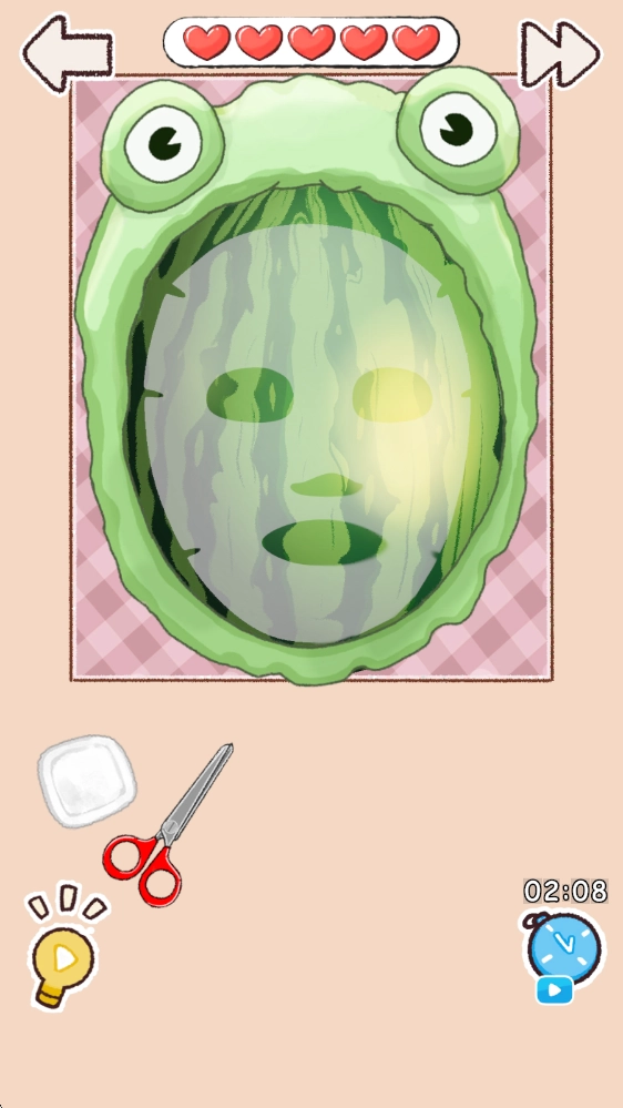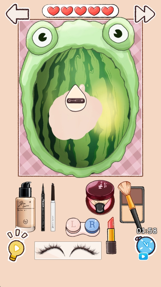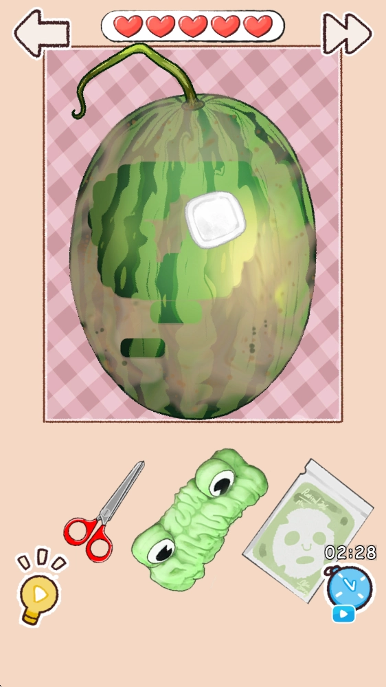以给这一关的西瓜化妆为例,第一步是用湿巾把所有污渍都擦拭干净。