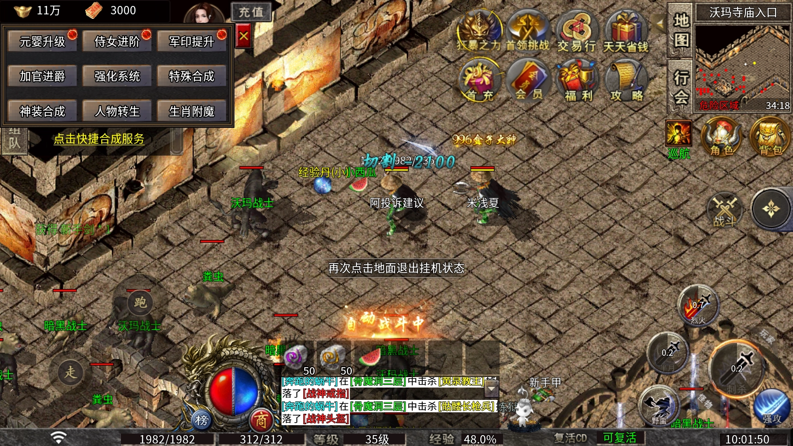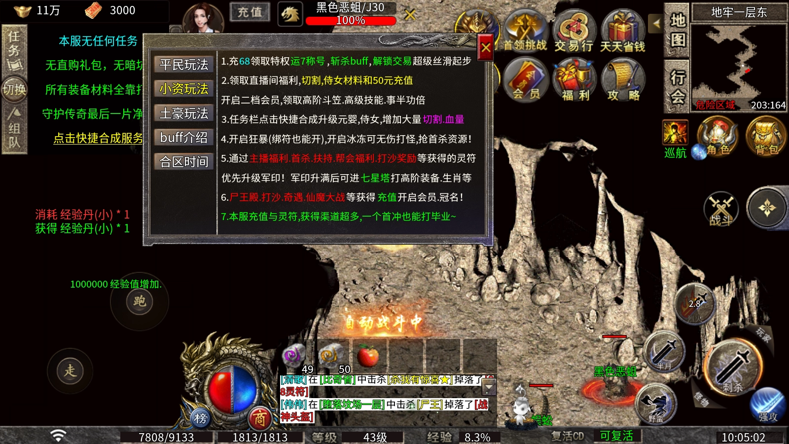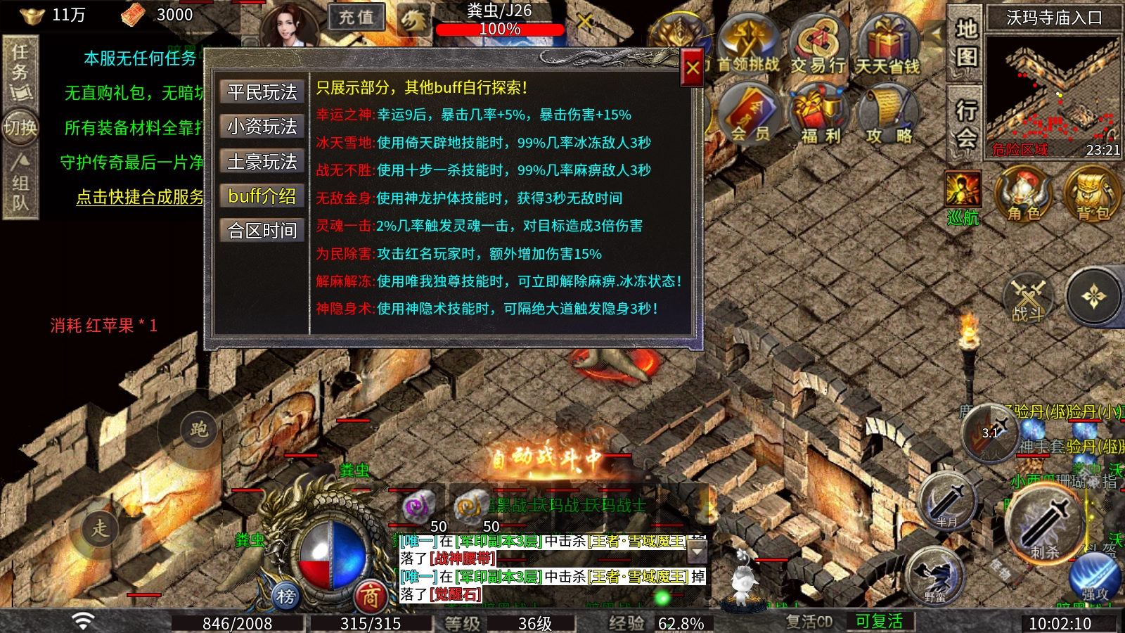 开启狂暴状态(即使绑定了符也能激活),开启冰冻效果就能无伤打怪,还能抢占首杀资源!