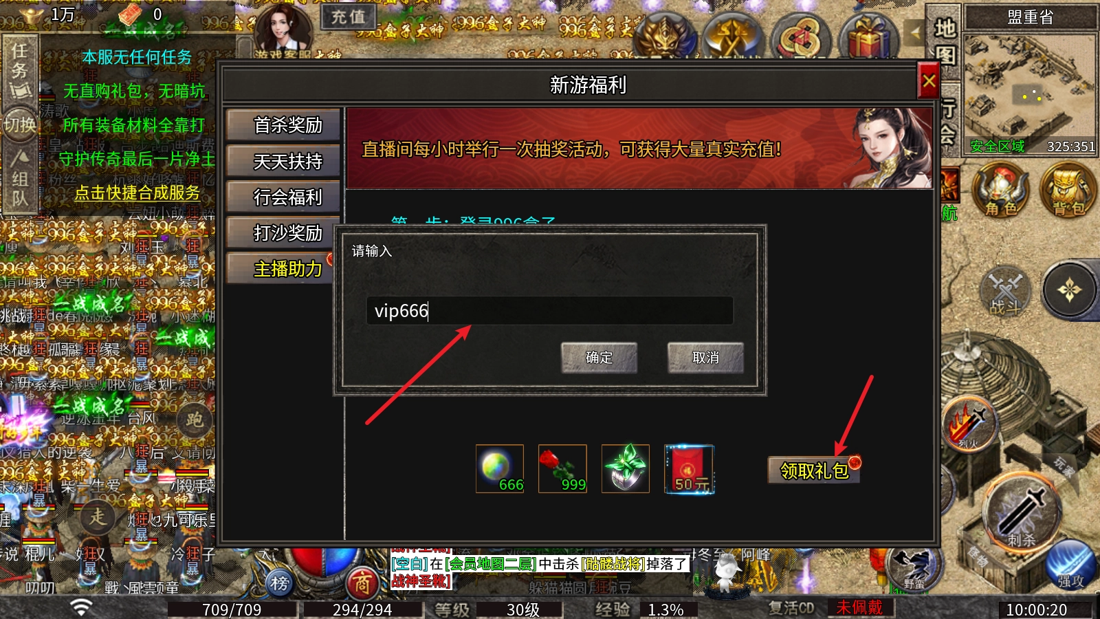 来直播间领福利啦!有切割道具、侍女材料,还有50元充值奖励~开通一档会员,直播间定期抽奖也能赢充值!另外各大地图的首领怪,必掉经验丹哦!