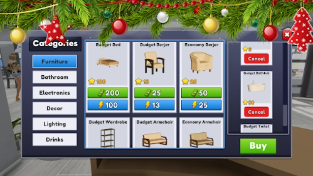 从家具、浴室用品、电子产品、装饰品、照明设备等各类物品里挑选出你钟爱的,接着随心所欲地装饰房间,将其定制成你理想的模样。