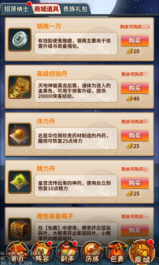 商城里购买体力丹和精力丹的次数,现在也是每天5点重置啦。重置之后,大家就能继续购买体力丹和精力丹了。这两种道具特别关键,是拉开战斗力差距的重要因素!前期一定要记得把体力丹和精力丹的购买次数都用完,一定要买光!一定要买光!一定要买光!重要的事情必须说三遍。